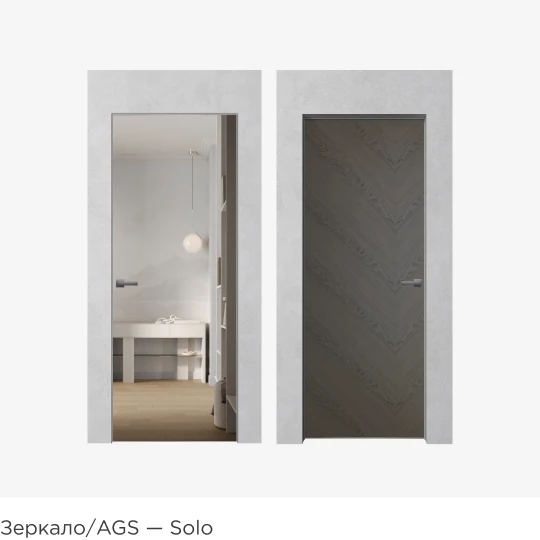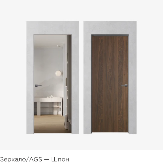 Шпон, зеркало, эмаль, цветное стекло AGS, двери в грунте — сочетайте любые покрытия.